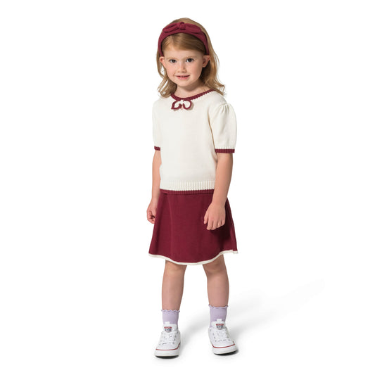 Girls' Long-Sleeve Top, Skirt And Bow Set