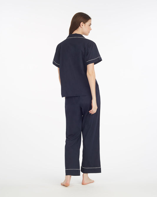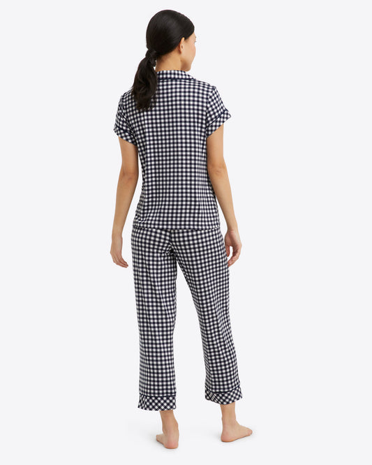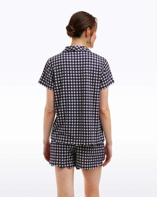 Scallop Sara Pajama Set in Navy Gingham