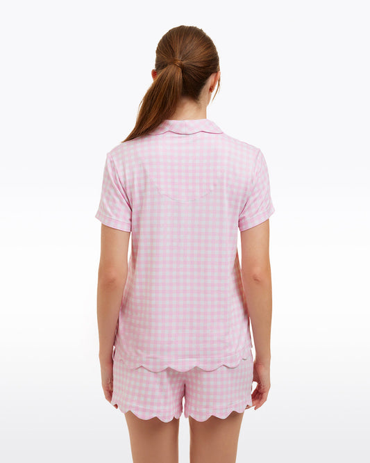 Scallop Sara Pajama Set in Pink Gingham