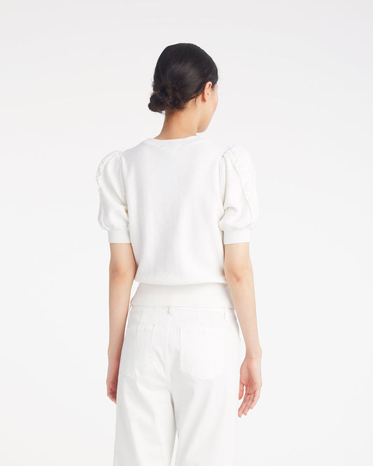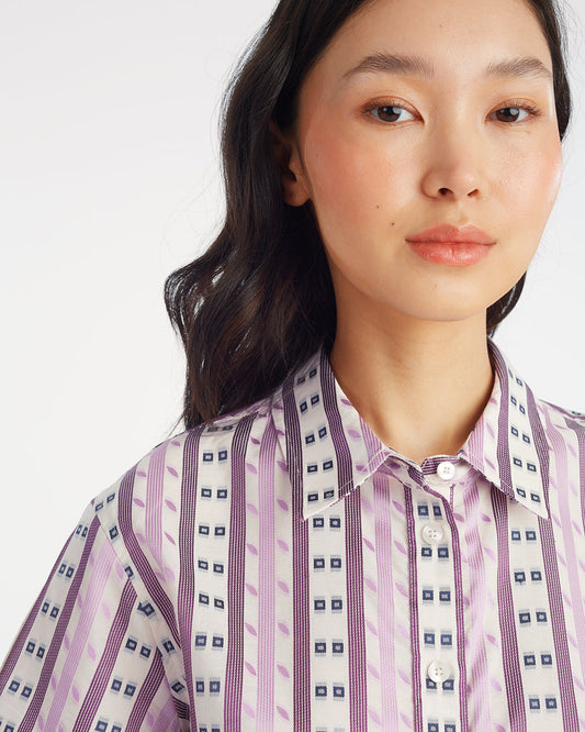Short Sleeve Cropped Button Down in Dotted Stripes Jacquard