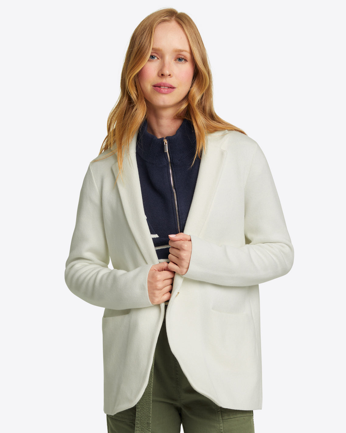 Sweater Knit Blazer in Magnolia White